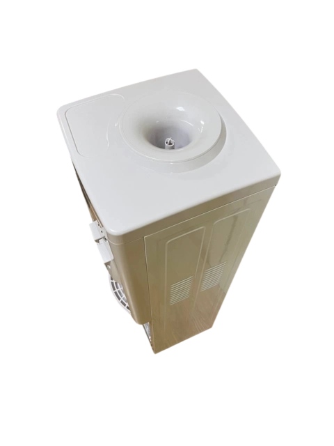 Напольный кулер для воды с верхней загрузкой бутыли в корпусе белого цвета, оснащен шкафчиком. Аппарат имеет два удобных крана для подачи воды типа "нажим кружкой" (горячая/холодная). С компрессорным типом охлаждения. Нагревательный элемент внутренний, спиральный.
